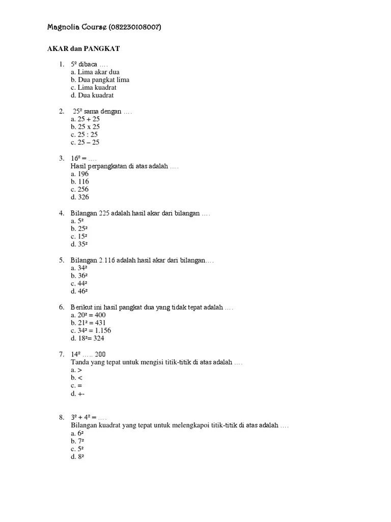 Jangan bosan belajar ya, hari ini kak susan mau ajarin kalian mencari bilagan kuadrat dari akar pangkat 2. Perpangkatan dan penarikan akar pangkat dua dan pangkat tiga suatu bilangan di sd. Bilangan kuadrat dan akar kuadrat. Tujuan dari penyusunan modul ini adalah sebagai bahan diskusi . Maka nilai n adalah 11 pangkat dua;