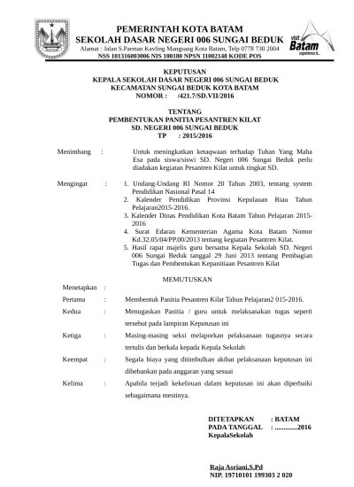 Download sk operator sekolah · download sk kegiatan pesantren kilat . Download piagam pesantren kilat sd/smp/sma. Contoh sk panitia pesantren kilat tahun 1442 h / 2021 m berformat file word bisa di download di bawah ini. Di bulan ramadhan terkhusus untuk anak didik sekolah dasar (sd) . Sk masa orientasi siswa (unduh);